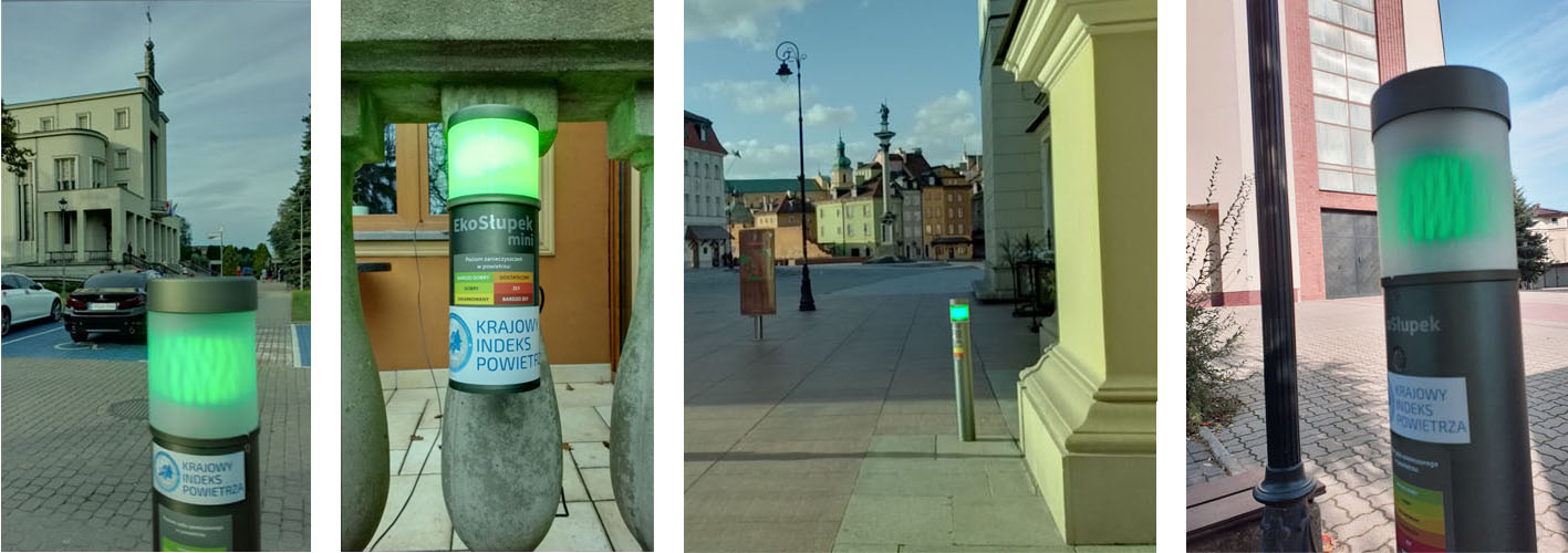 Na mapę Krajowego Indeksu Powietrza nanoszone są wyniki przekazywane z EKOSŁUPKÓW, które służą do pomiaru pyłów i związków oraz sygnalizowania stanu jakości powietrza za pomocą koloru światła.